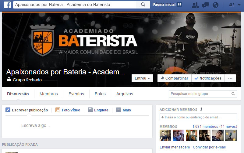 Junte-se A Nós!: Somos mais de 1600 bateristas no Grupo da Academia no Facebook. CLIQUE AQUI e faça parte deste movimento e Recebas Dicas Exclusivas.
